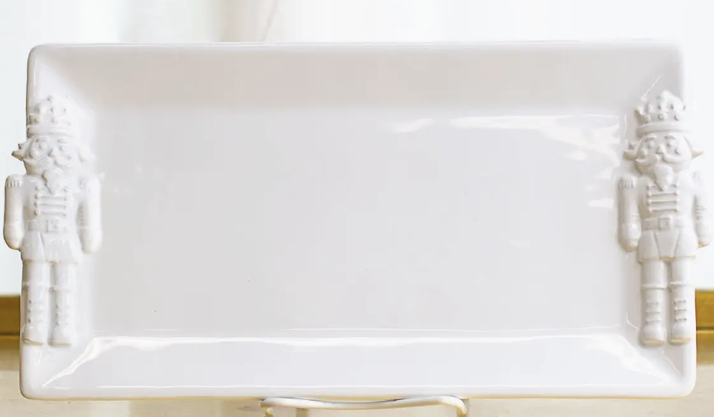 Royal Nutcracker Embossed Rectangle Platter White 12x6.5