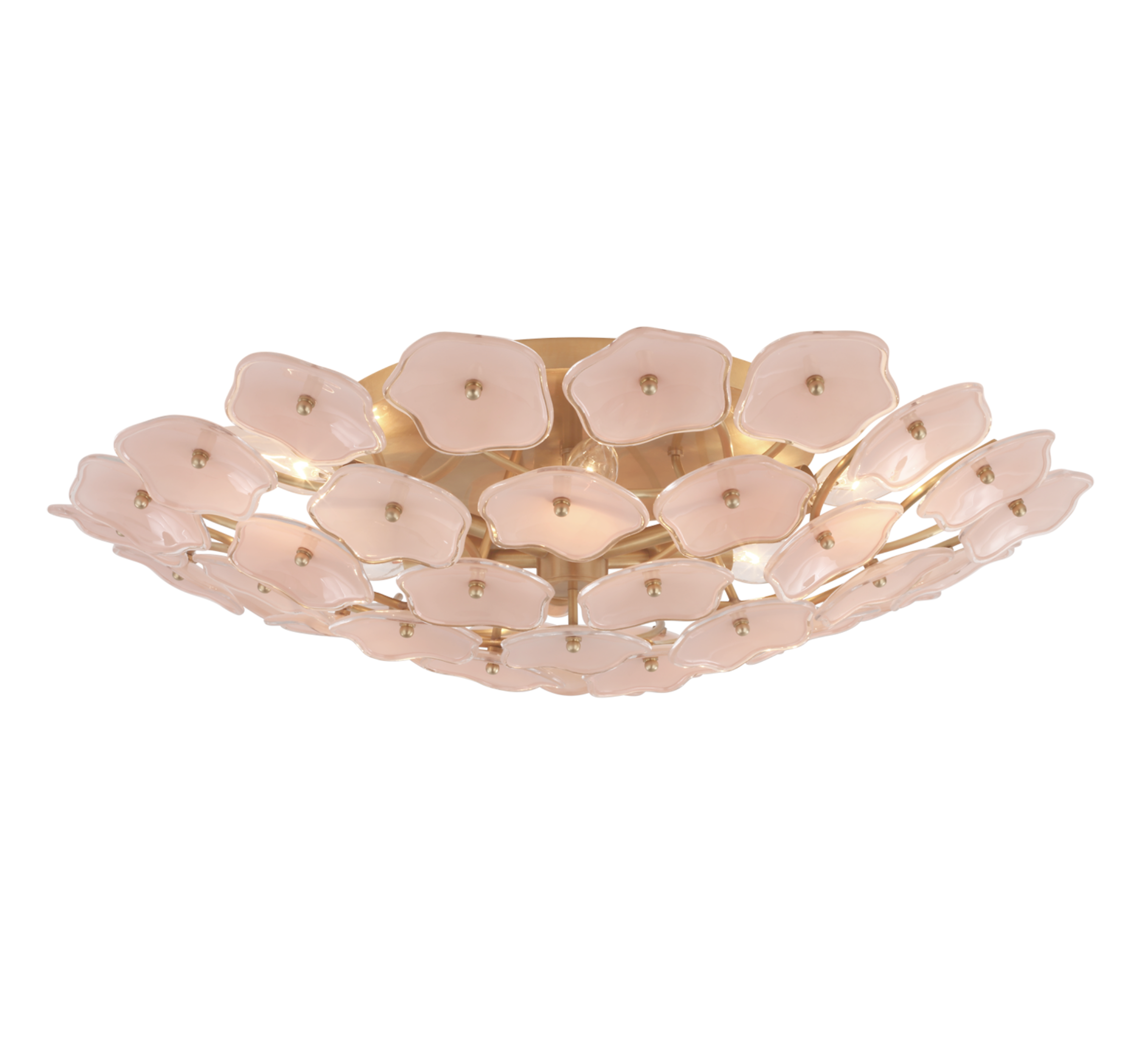 Leighton Large Flush Mount - Soft Brass and Blush Tinted Glass