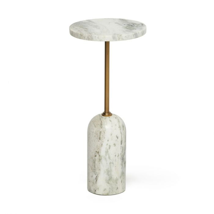 Glacier marble pairs with golden bronze stainless steel to make the Pren Drink Table both super cool and super functional.
