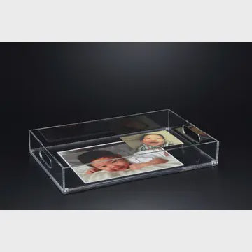 The 11"x17" Rectangular Insertable Tray from Huang Acrylic is an elegant tray for home or office use. Add photos, meaningful art, or a special message to personalize the tray by using the insertable layer. Huang Acrylic is an American company that is focused on quality, design, and style for the discerning customer since 1978.