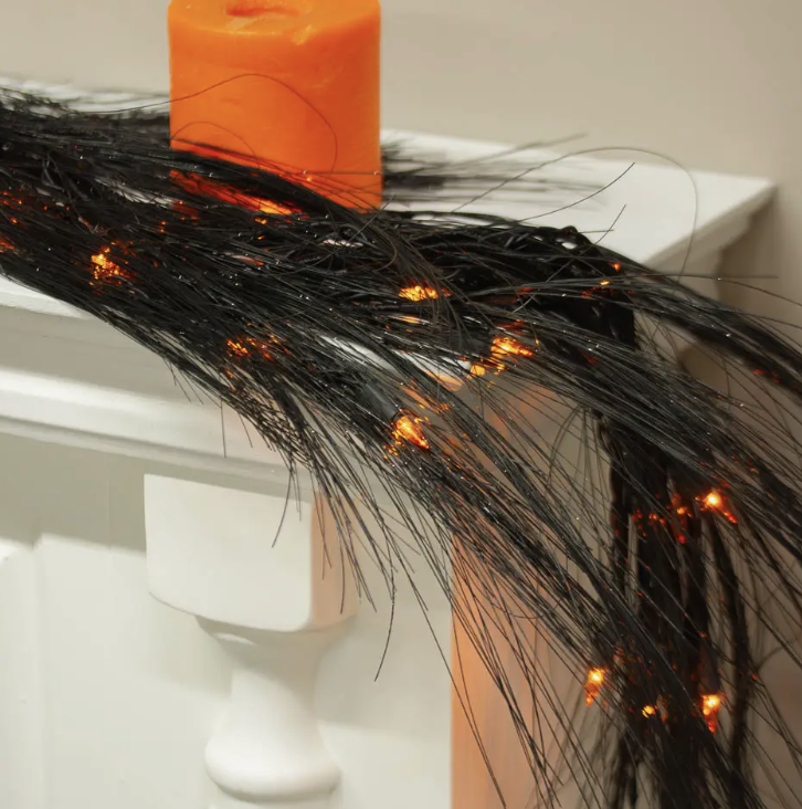 72' Halloween Wispy Black Pine Glitter Garland w/ Lights