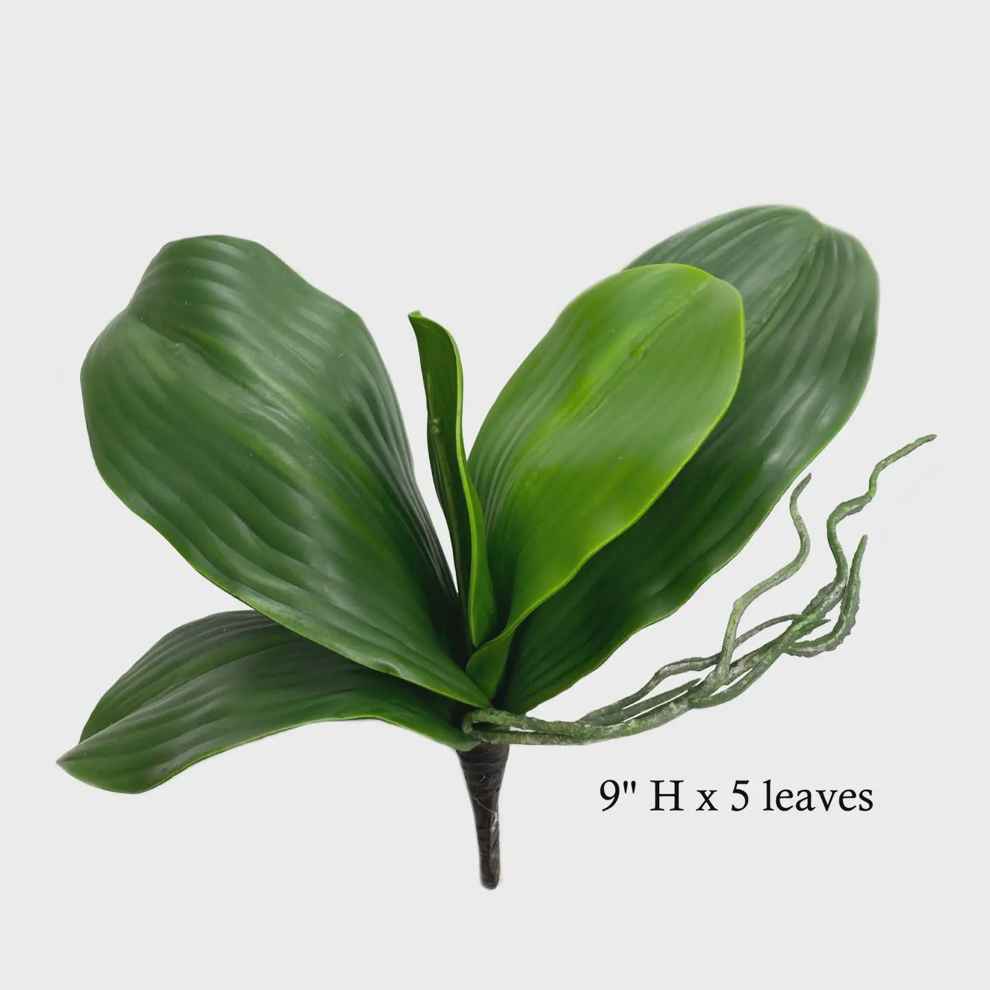 • 9"H with 5 leaves and moss green foliages