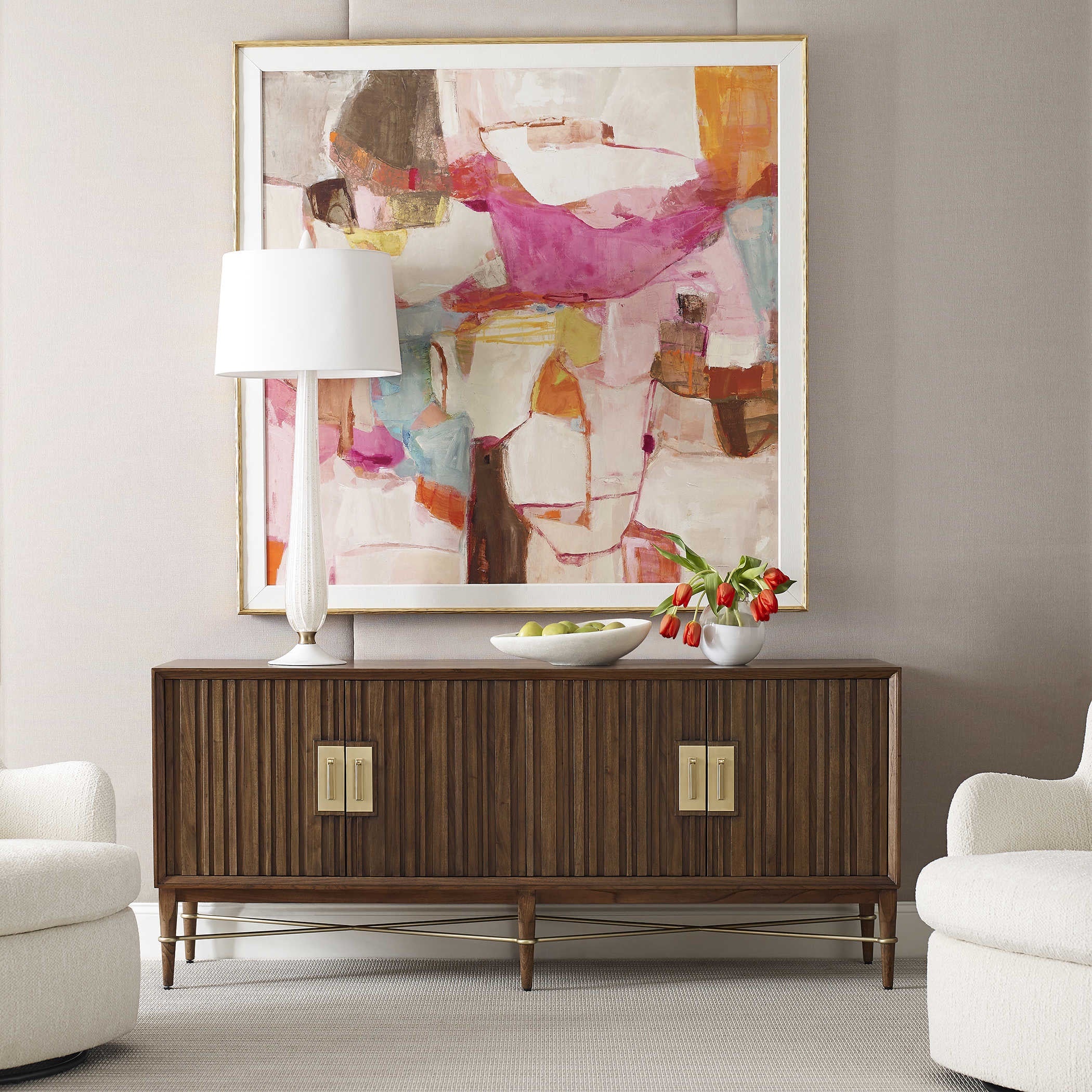 Chris Shands, a Contemporary Artist from Richmond, Virginia, has been creating art her entire adult life, first as a textile artist and ceramicist, then as an abstract painter. Chris likes to experiment with her use of textures and beautiful colors. Her work is greatly influenced by her world travels. This replicated canvas, available exclusively at Revelation, rests in a beautifully carved wood frame with an antique gold leaf finish and a white linen-like matte. May be hung horizontal or vertical.